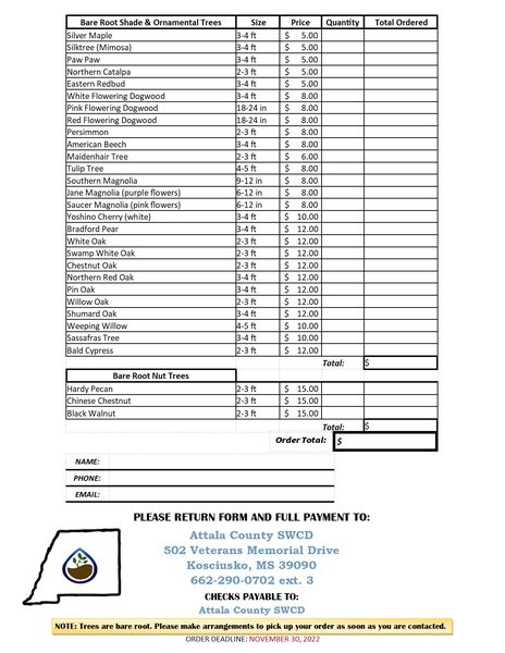 We have decided to extend the order date for our tree sale due to increasing interest. We have extended the deadline from November 30, 2022 until December 16, 2022!!