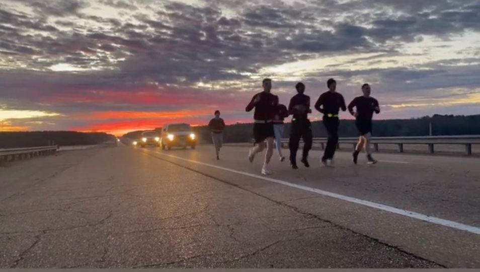 MSU ROTC cadets are carrying Thursday’s game ball to Calhoun City, where they’ll meet Ole Miss ROTC cadets who will take it on to Oxford.