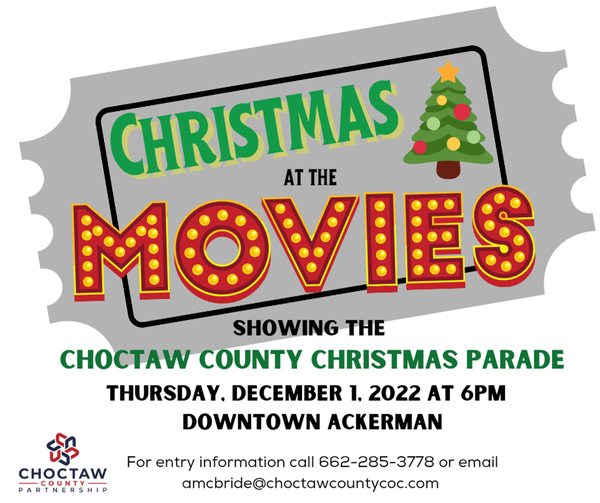 Join us for Christmas and movie magic at the Choctaw County Christmas Parade on Main Street in Ackerman.